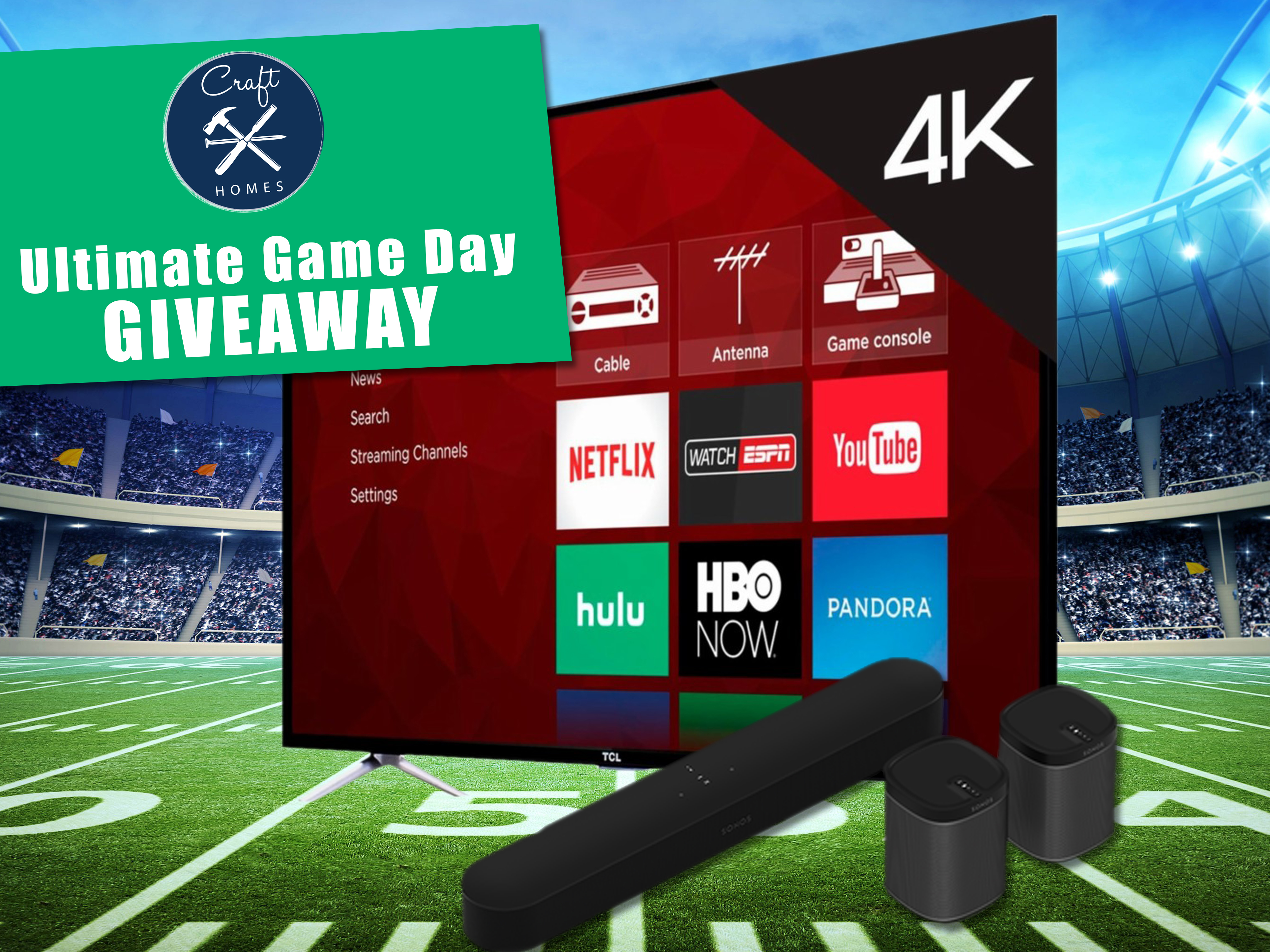 Take your game day experience to the next level! Craft Homes is giving away the ultimate entertainment package so you can experience this year’s college playoffs the best way possible. Enter to win a Vizio 55” 4K Smart TV AND a Sonos Sound Set with a Beam Soundbar and two Play 1 Speakers.